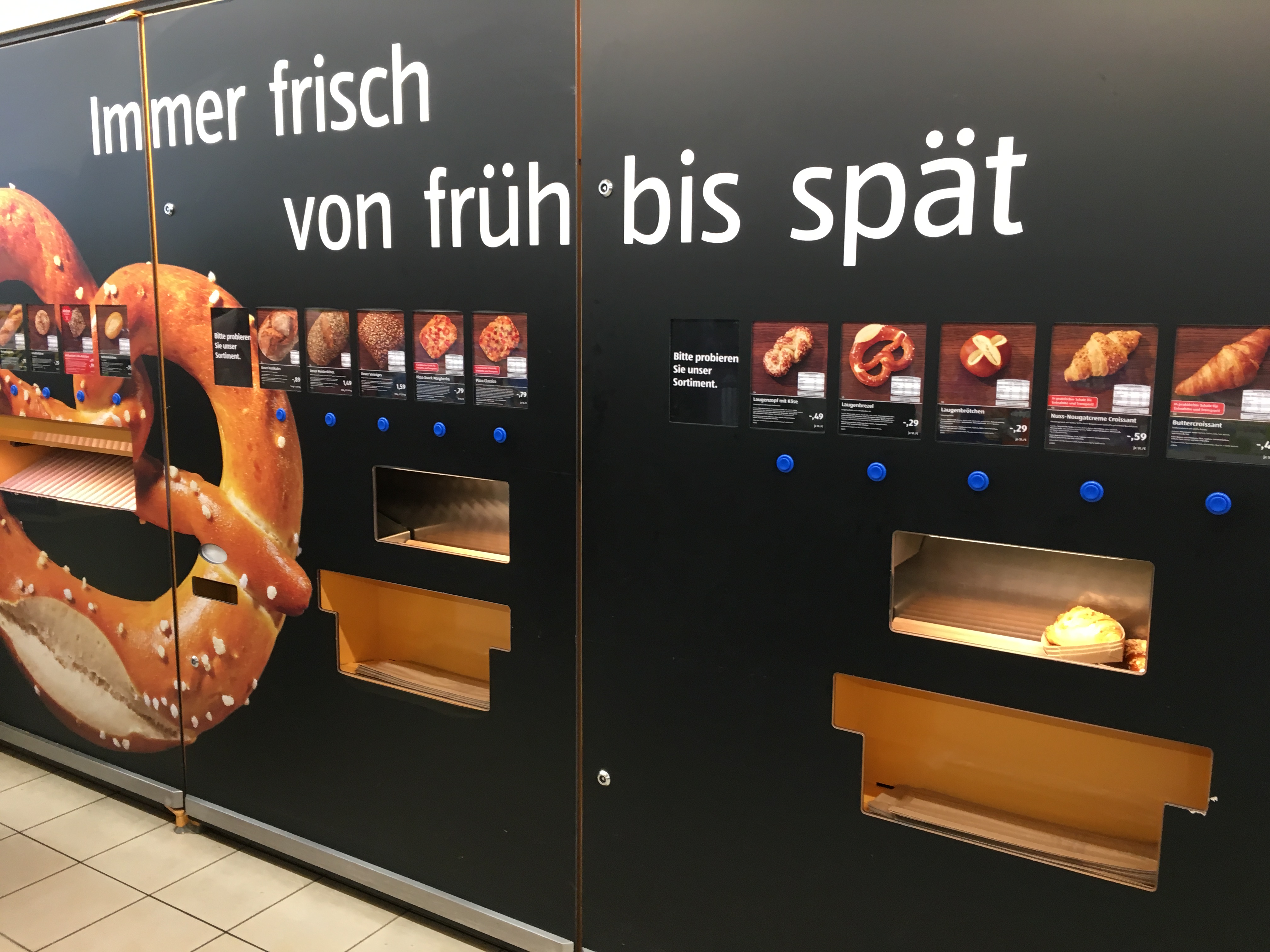 Aldi 매장에서 난생 처음으로 빵 자판기를 발견했다. 저 파란색 버튼을 누르면 빵이 또르르 하고 떨어진다. 유럽에 온 이후로 삼시세끼 빵을 먹고 있어서 슬슬 물리기 시작한 빵이다.