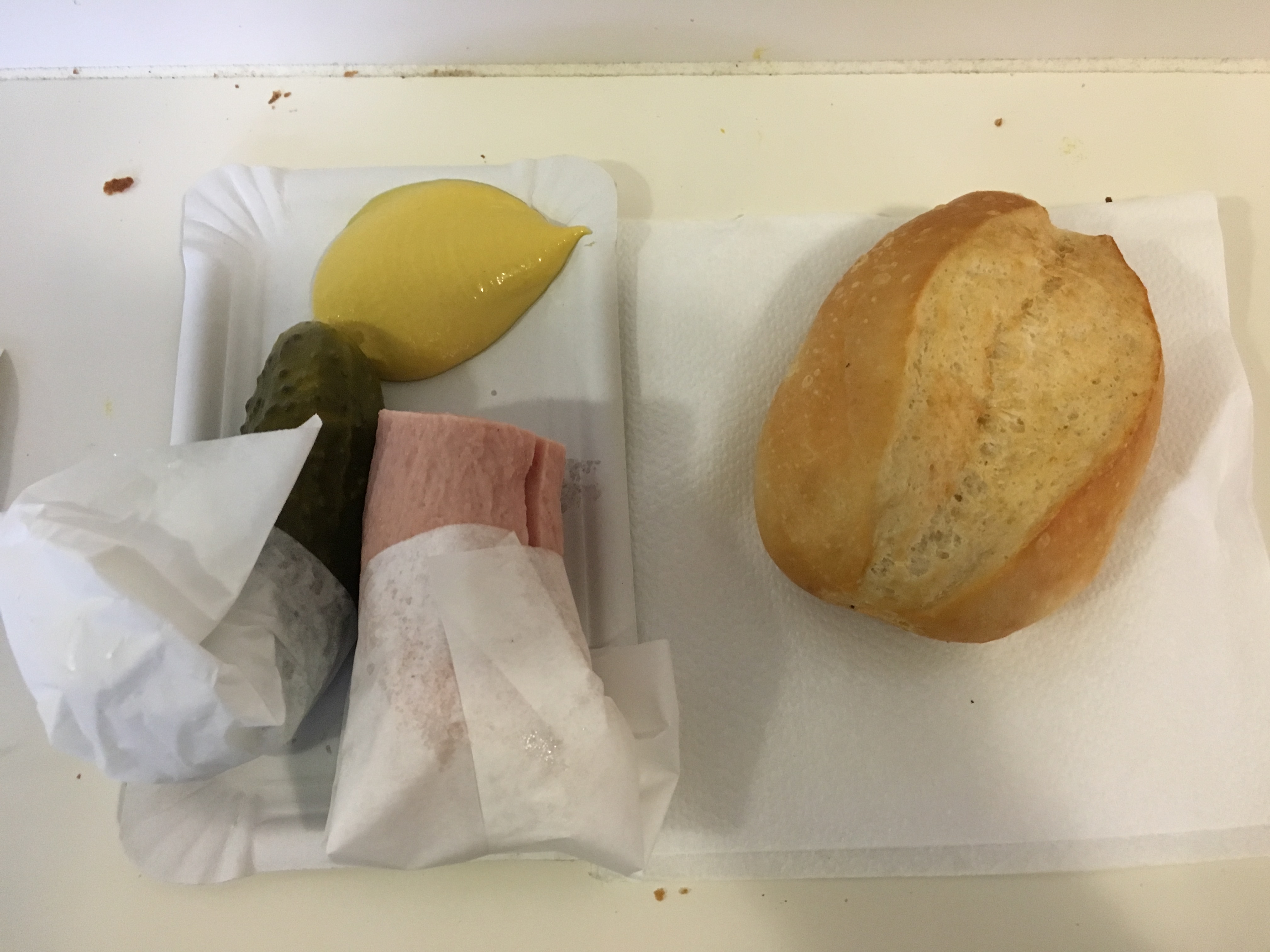 맛은? 빵은 바게뜨처럼 겉은 바싹하고 안은 부드러웠다. 돼지고기 소세지는 참 속이 꽉 차 있었고 적당히 짭짤하면서 깔끔한 맛이었다. 피클은 이제 막 밭에서 올라온 듯 신선하고 특유의 쉰맛이 입맛을 자극했다. 겨자는 아주 많았다. '뭔 놈의 겨자를 이렇게 많이 줘?' 라고 생각될 정도로 양이 엄청났다.