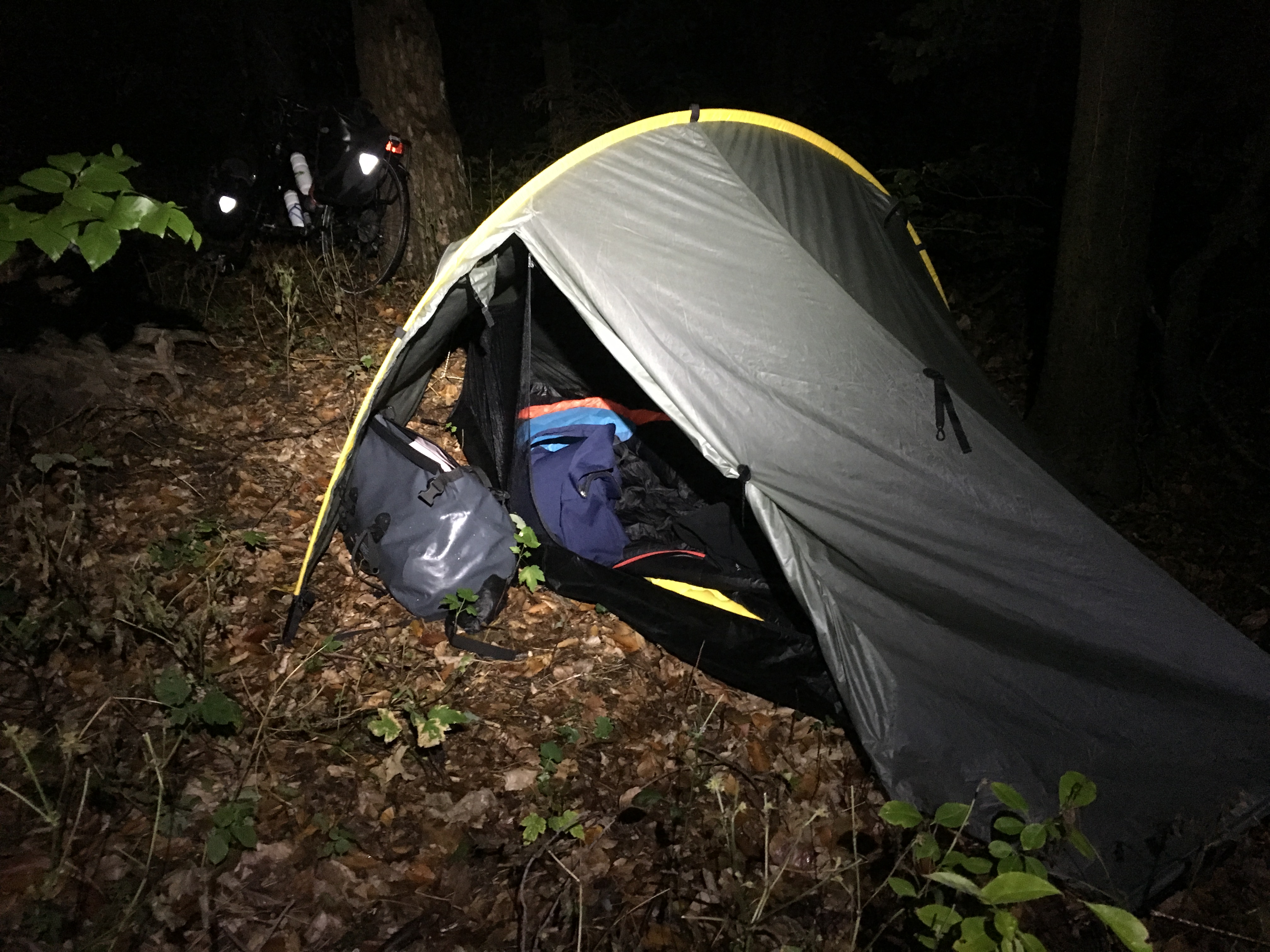 그렇게 지금껏 내 평생 해 온 펌프질보다 더 많은 펌프질을 한 끝에서야 겨우 텐트를 칠 장소를 찾을 수 있었다. 하루종일 내린 비로 인해 아~~주 수분을 가득 품은 낙엽들이 무성히 깔린 곳을 말이다.