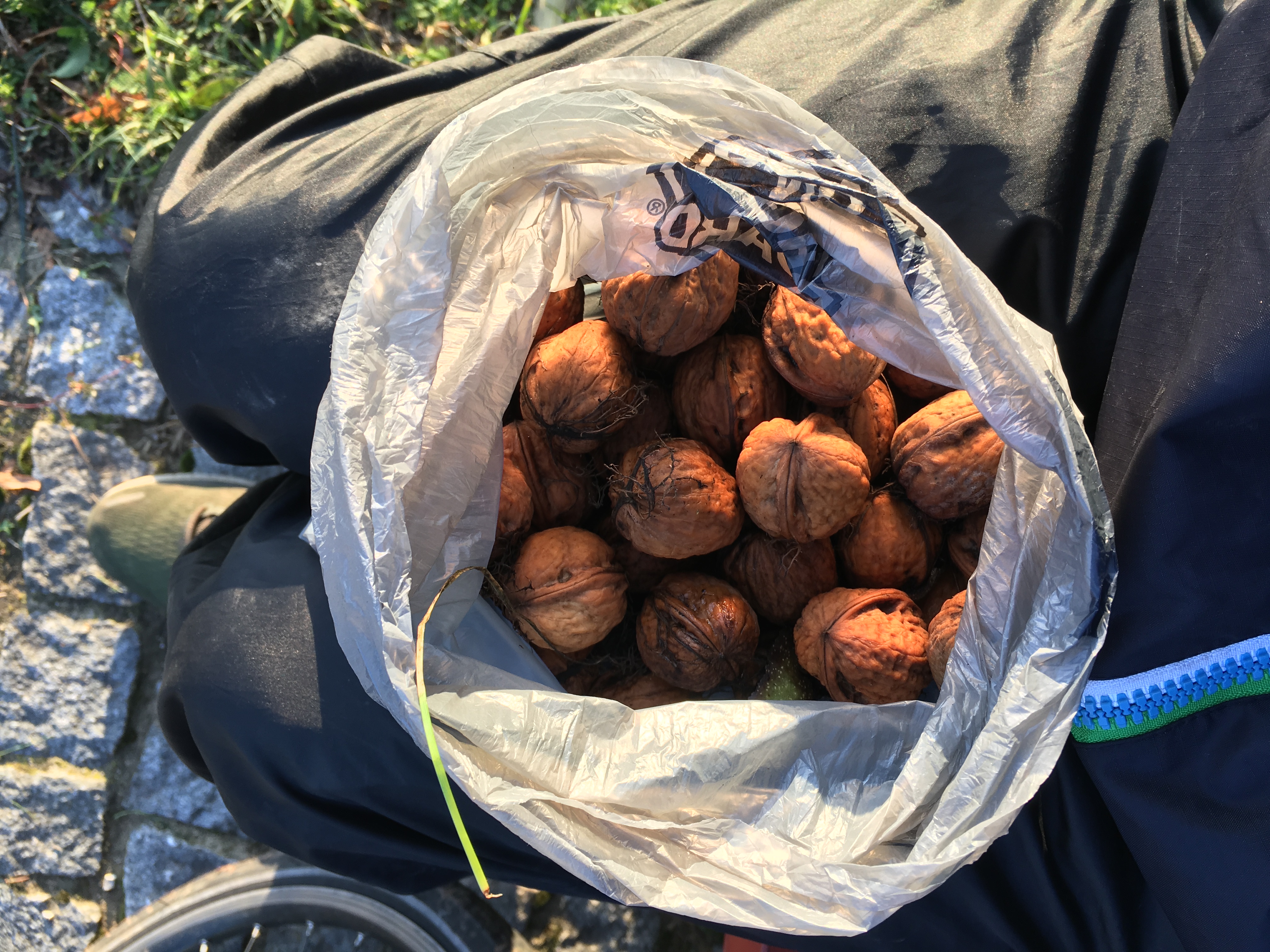 그녀는 짤막하게 내 안부를 물어보더니 나를 길 건너편으로 데리고 갔다. 거기에는 호두나무 한 그루가 떡 하니 서있었고 바닥에는 셀 수없이 많은 호두들이 떨어져 있었다.